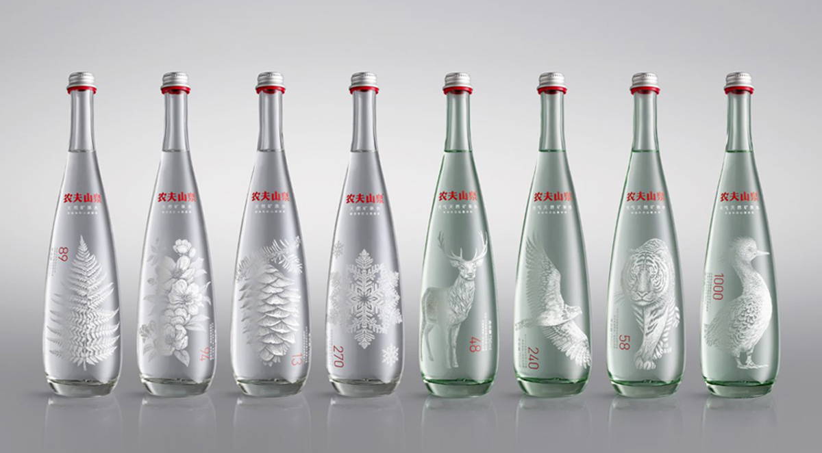 例如:农夫山泉推出的高端水,在水的包装上,农夫山泉也彰显了高逼格定位,由英国一个名为“Horse设计室”的设计公司设计,细长的玻璃瓶身,线条极为流畅,而瓶身包装是8种长白山生态文化,彰显了浓郁的自然人文气质。据了解,让产品回归自然,向自然生态致敬是本次产品在生产设计中所传达出的人文理念。